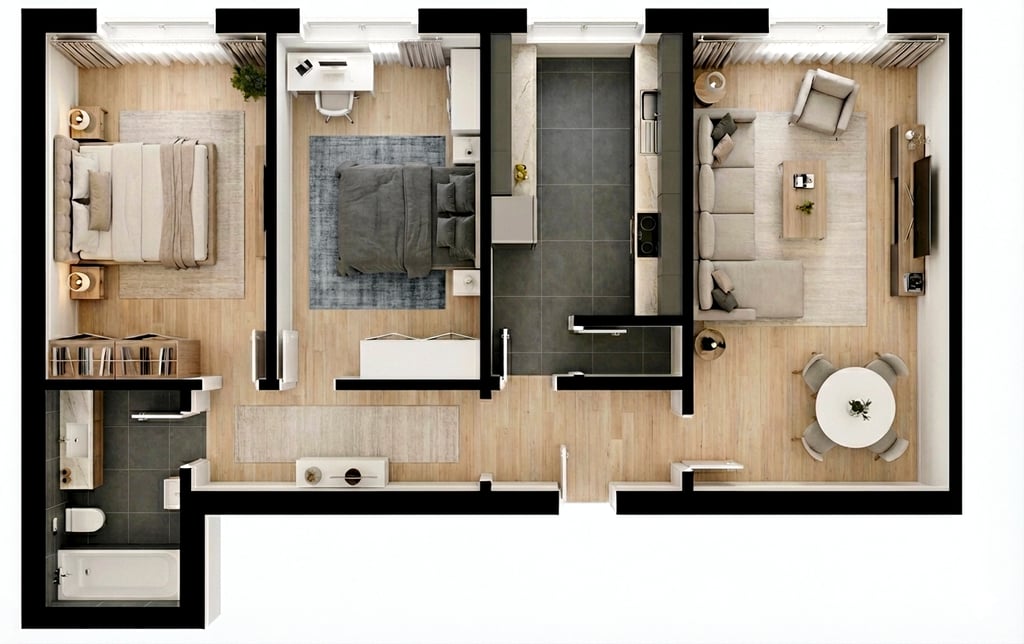 BLUP visual — Planta humanizada para promoção imobiliária